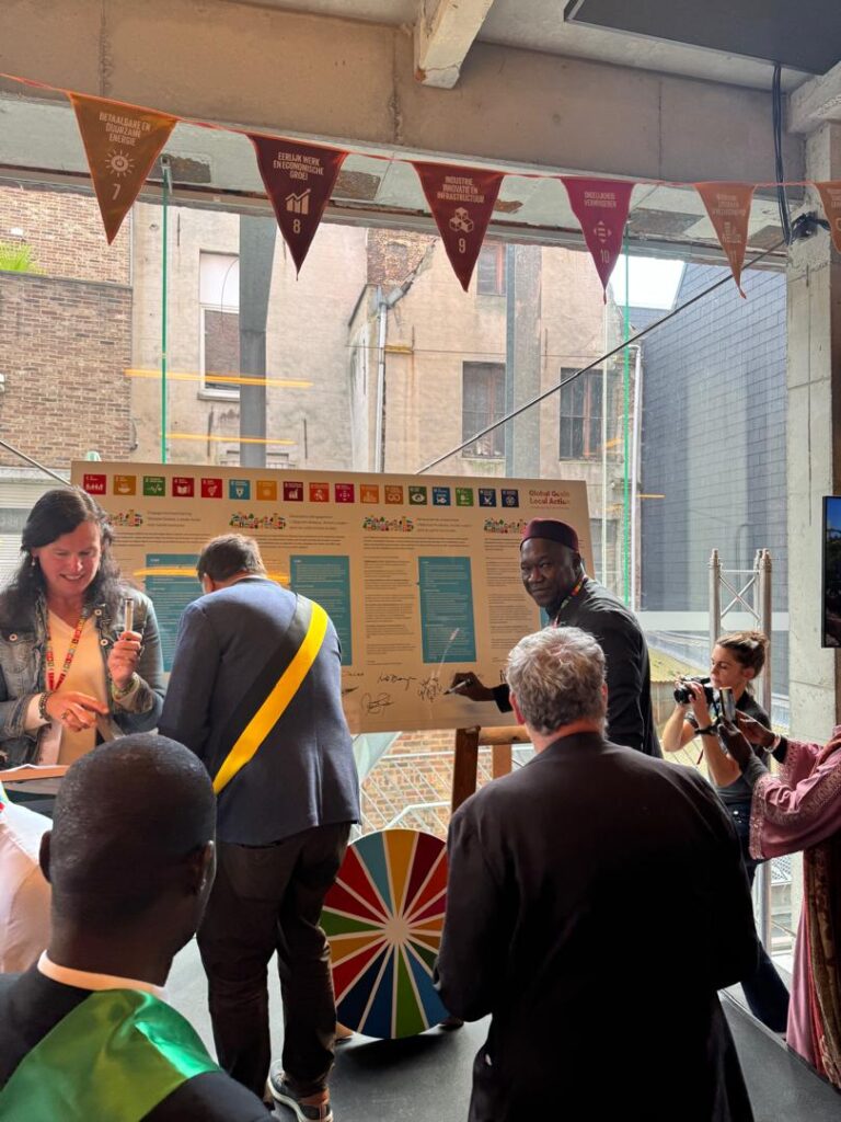 Le Maire Papa Banda Dièye et la délégation qui l’accompagne ont pris part ce mardi à la conférence internationale sur les Objectifs de Développement Durable (ODD) à Malines, en Belgique. Le rappel des engagements de la communauté internationale vis-à-vis des cibles des 17 ODD à l’horizon 2030 était au menu des échanges. Une invitation a également été faite aux autorités locales du Nord et du Sud de signer des engagements symboliques pour orienter leurs politiques publiques vers l’atteinte des ODD d’ici 2030 et de se doter d’instruments de suivi pour mieux évaluer leur niveau d’implication. Différents ateliers ont été constitués pour aborder les différentes cibles, notamment celles qui semblent prioritaires.